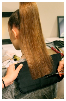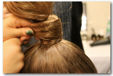 Small sticks were used when needed, to help ensure ponytails would stand tall.
