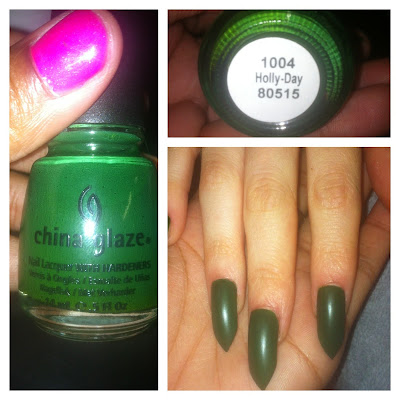 To make matte green nails everyone will envy, Joy brushed on Holly-Day by ChinaGlaze and topped it with Matte Magic by ChinaGlaze.